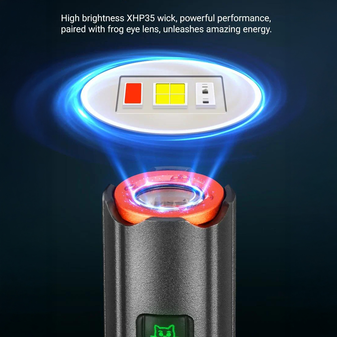 Завдяки двом акумуляторам 14500 (2×1200 мА·год) ліхтар працює тривалий час без підзарядки і зберігає стабільну яскравість навіть при низькому заряді.